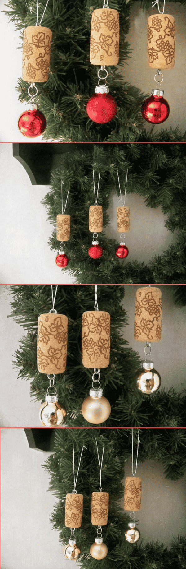 Bouchons en liège et mini boules de Noël à accrocher sur l’arbre. Super facile à faire soi-même !