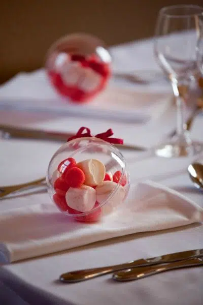 Vous pouvez également utiliser ces boules en plastique transparentes pour décorer la table de Noël d’une manière très gourmande.