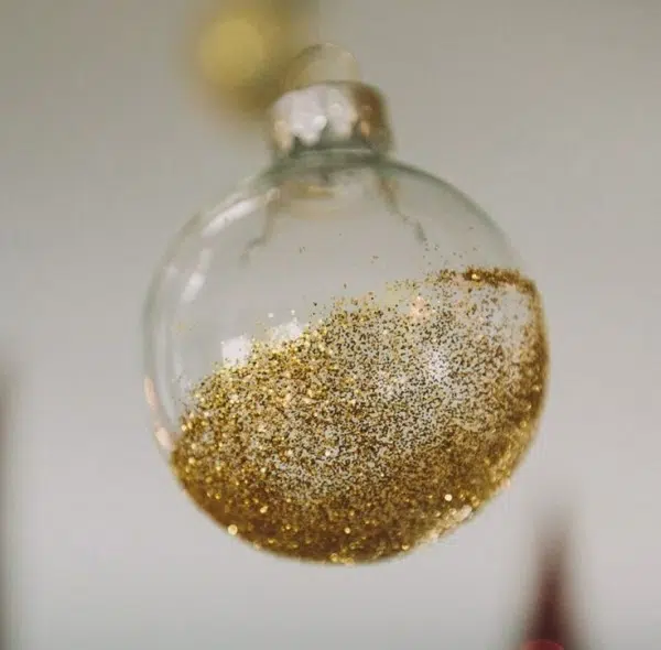 Si simple à faire soi-même ! Une boule de Noël transparente à personnaliser avec des paillettes dorées — à tester cette année pour Noël…