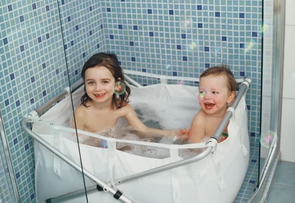 Facile à installer, elle se glisse dans la douche et s’ouvre pour accueillir un enfant capable de tenir assis seul. Complètement ouverte, elle est remplie sur un tiers, plaisir et liberté de mouvement garantis. Pour rincer, mieux vaut verser un filet d’eau à la main plutôt que d’utiliser le pommeau, pour éviter toute surprise. Une fois lavé, l’enfant peut s’amuser dans l’eau quelques instants sous la surveillance d’un adulte.